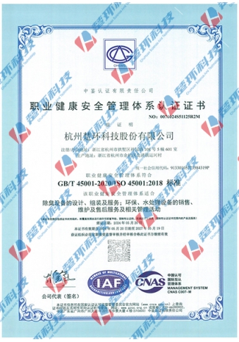 職業健康安全管理體系認證證書